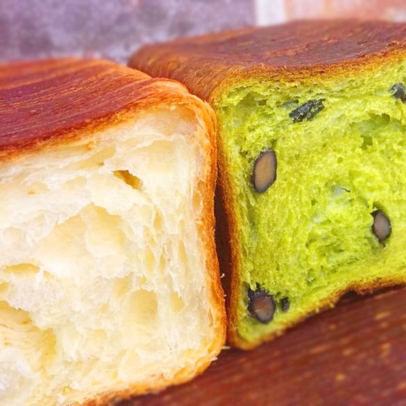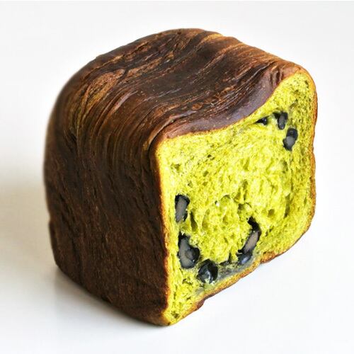 しっとりクリーミーな生地に京都宇治の抹茶を練りこみ、大粒の丹波黒豆を巻きこんだ贅沢なデニッシュ食パンです。コーヒーにも、お抹茶や緑茶にも合う一品です。