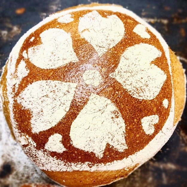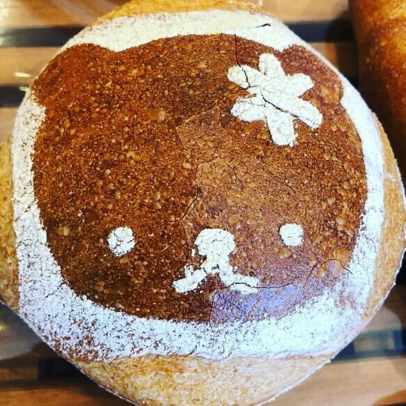 もちもちした国産小麦100%を使った自家製酵母の可愛い柄入りカンパーニュです。
